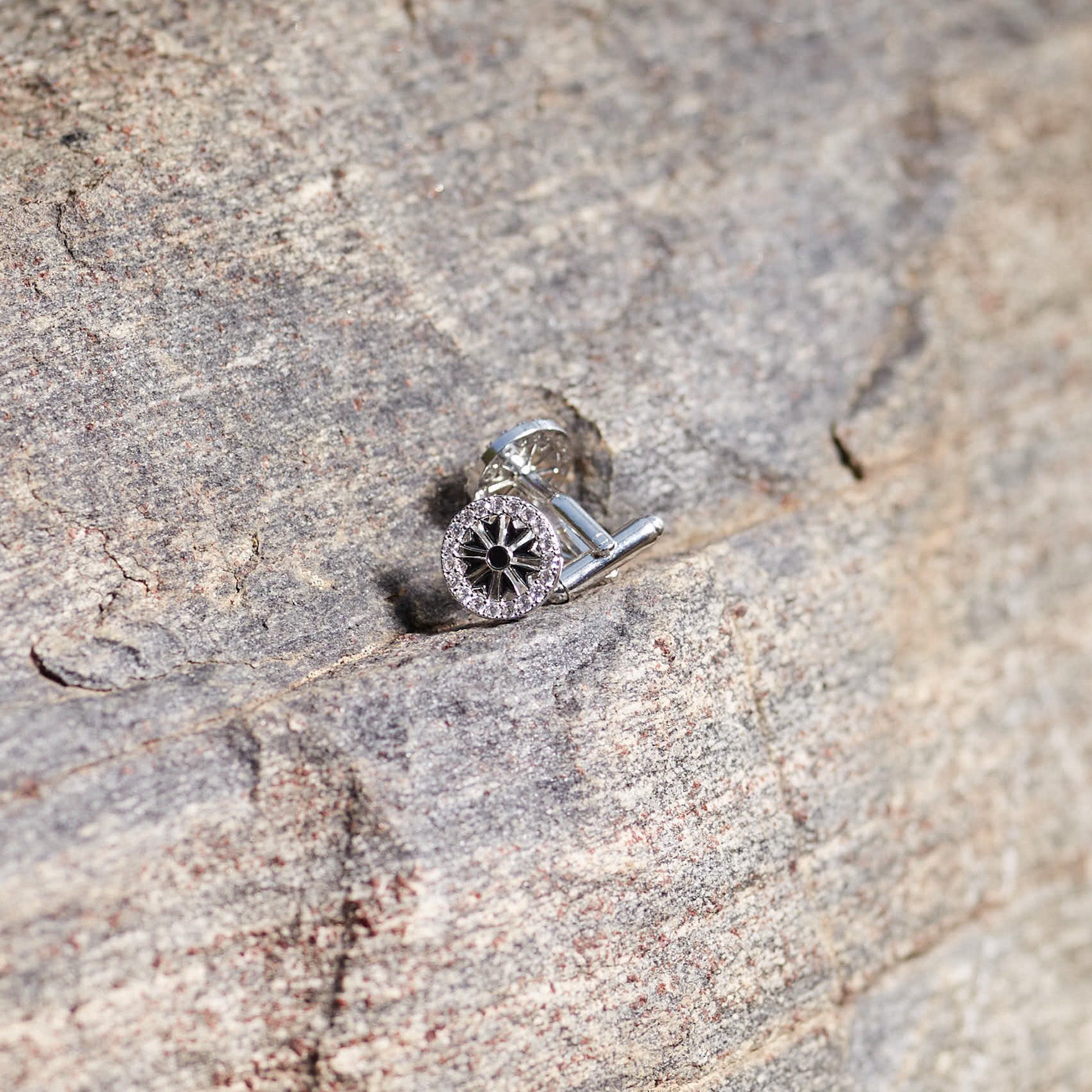 Gye Nyame adinkra cufflinks in silver/ enamel and sparking zirconia