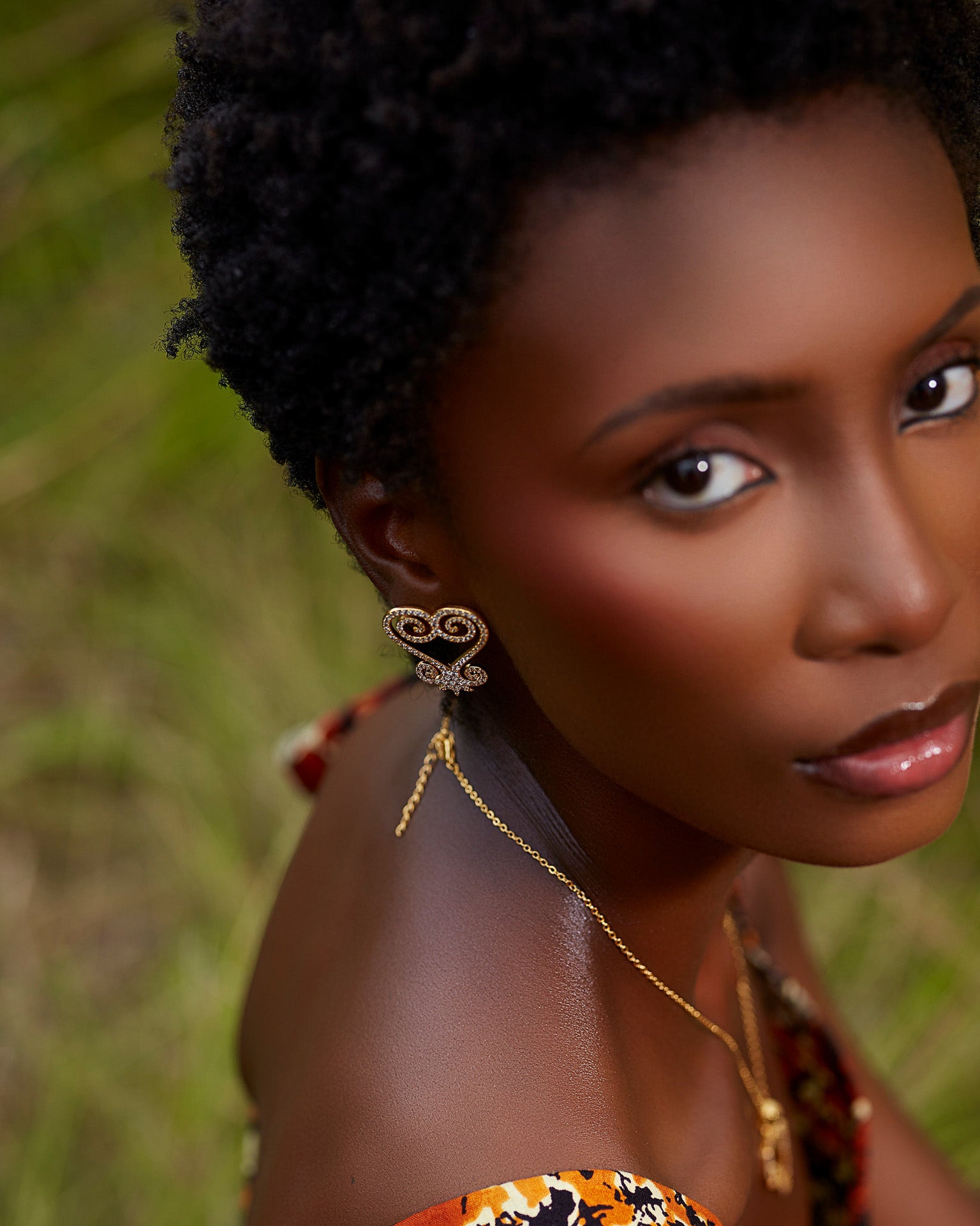 Sankofa adinkra earrings in gold or silver with sparking zirconia